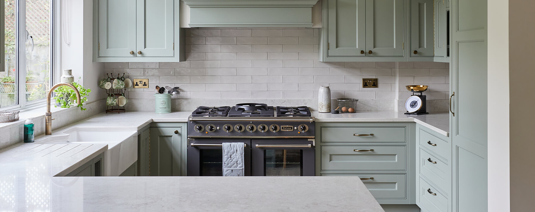 Their brief was to create a warm, homely, and rustic feel, using a mix of materials such as painted cabinets, timber, and exposed brick. The focus was on warmer tones, opting for beige and olive green rather than cool greys. The area needed more balance than the current kitchen offered. Marrying an elegant soft look & feel while creating functionality.