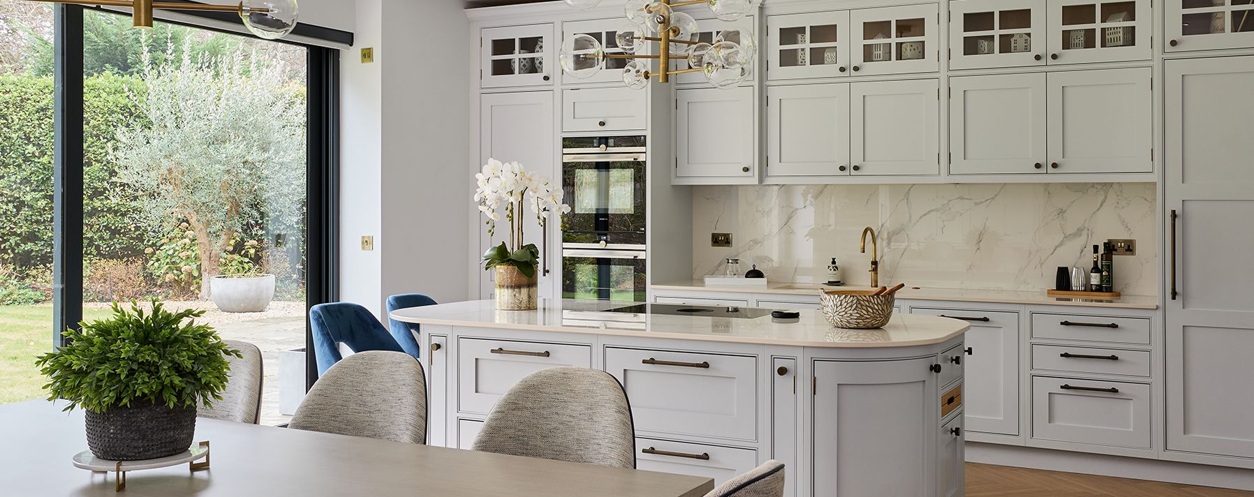 Our client wanted to transform their kitchen in Cobham from a utilitarian angular design to a soft and welcoming entertainment space.